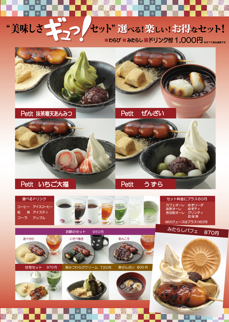 あんこを使用したメニュー・ふわふわにかいたかき氷・やさしい味のにゅうめんなど、