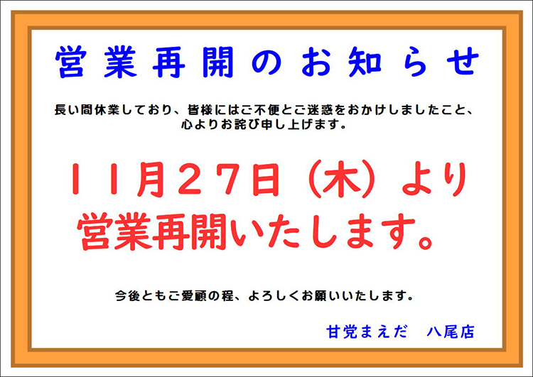 「いらっしゃいませ!甘党まえだ 八尾店です!」