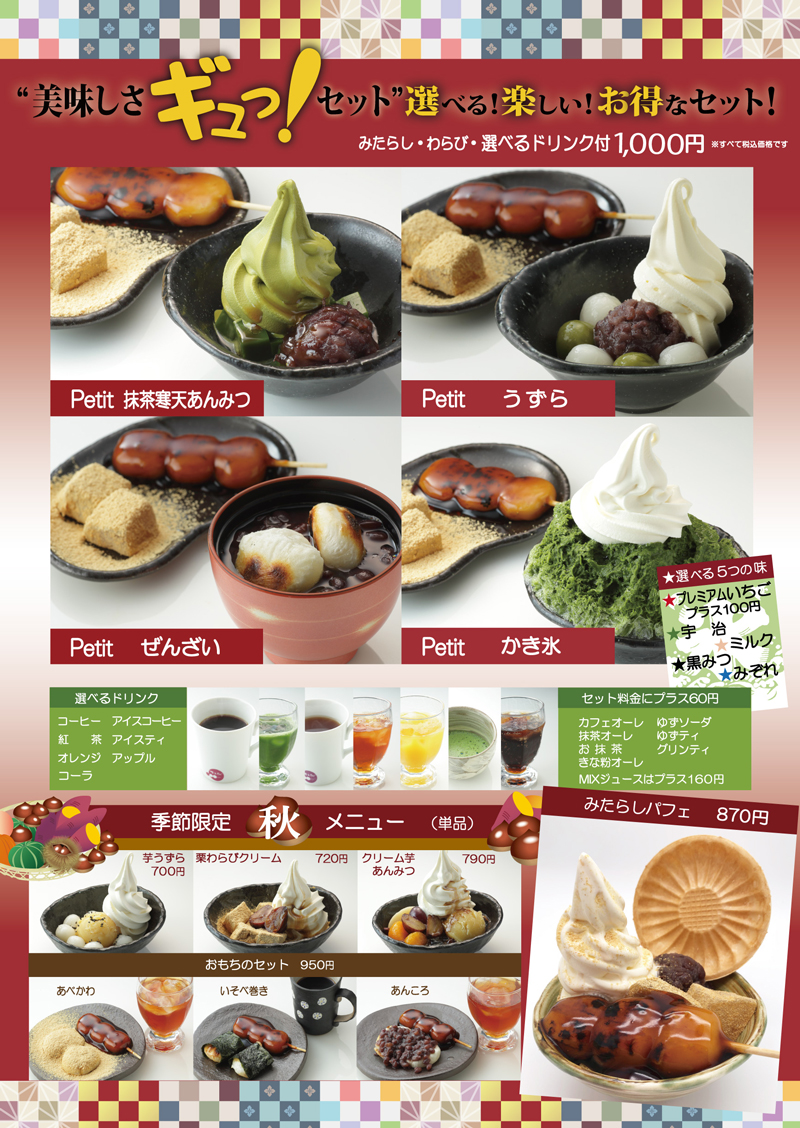 あんこを使用したメニュー・ふわふわにかいたかき氷・やさしい味のにゅうめんなど、